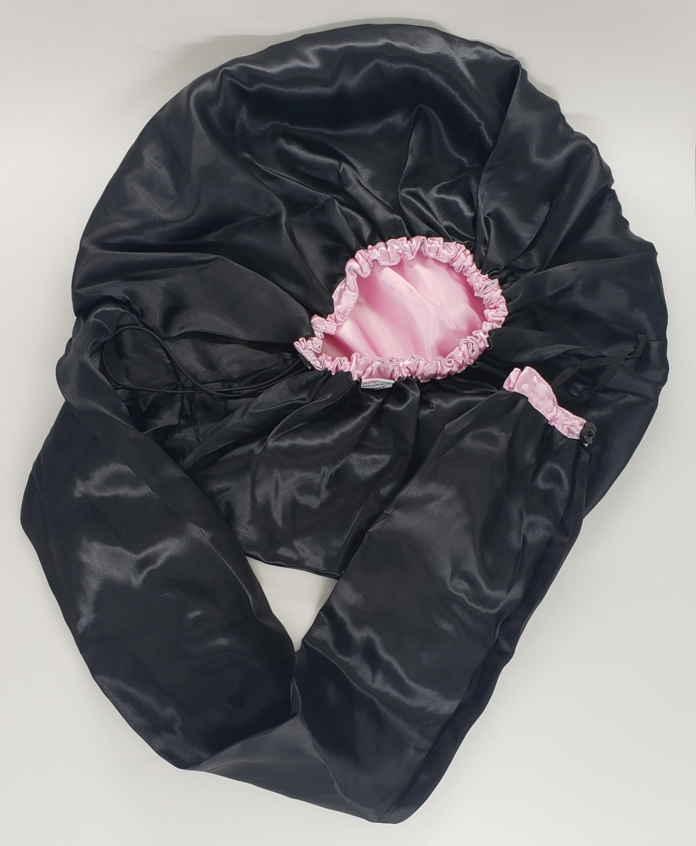 Touca Difusora de Cetim Exclusive Anti Frizz - Preta com Rosa Bebê