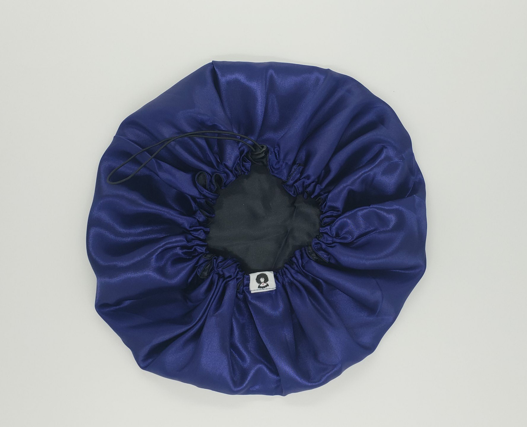 Touca de Cetim Dupla Face Ajustável Preta com Azul Marinho