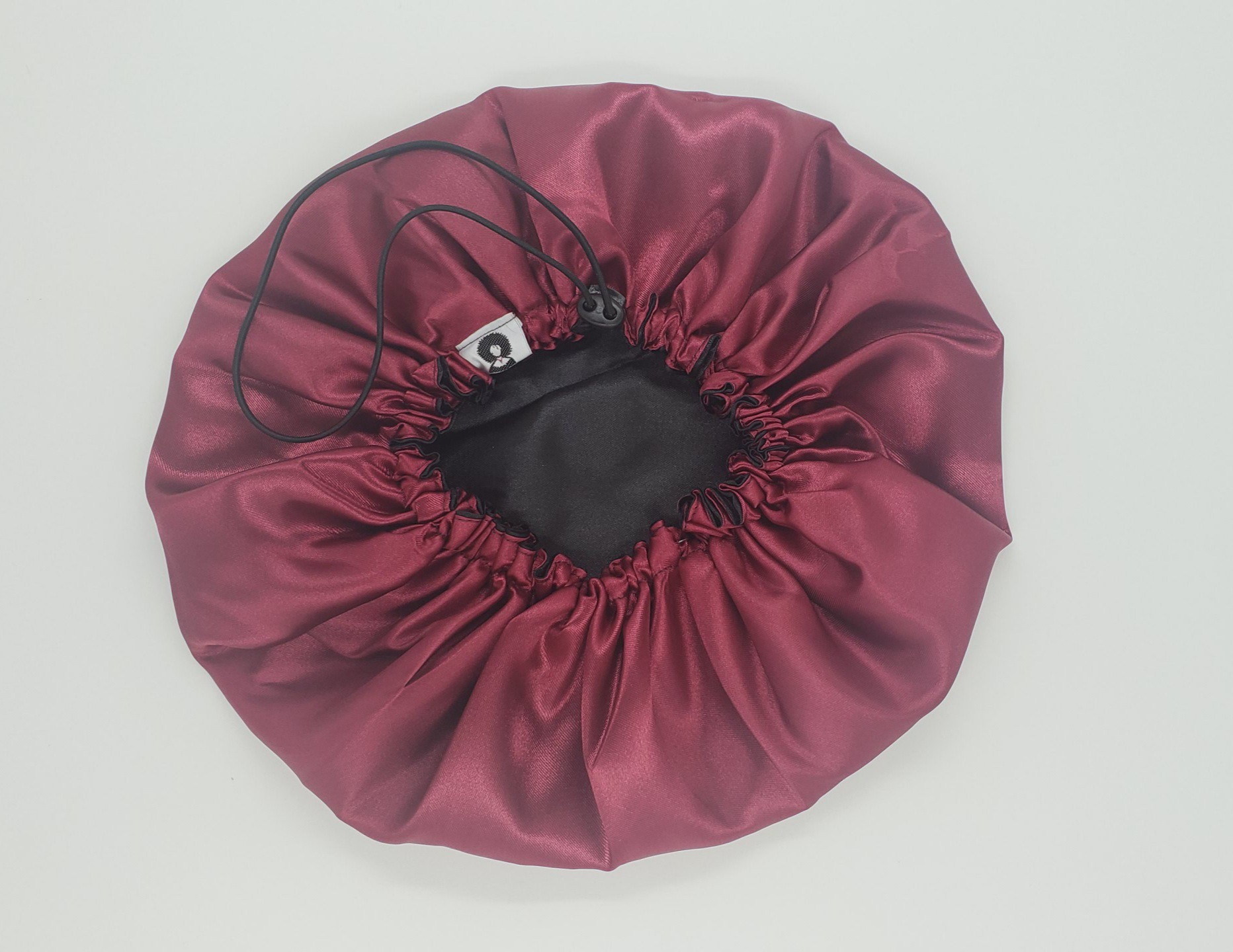Touca de Cetim Dupla Face Ajustável Preta com Marsala