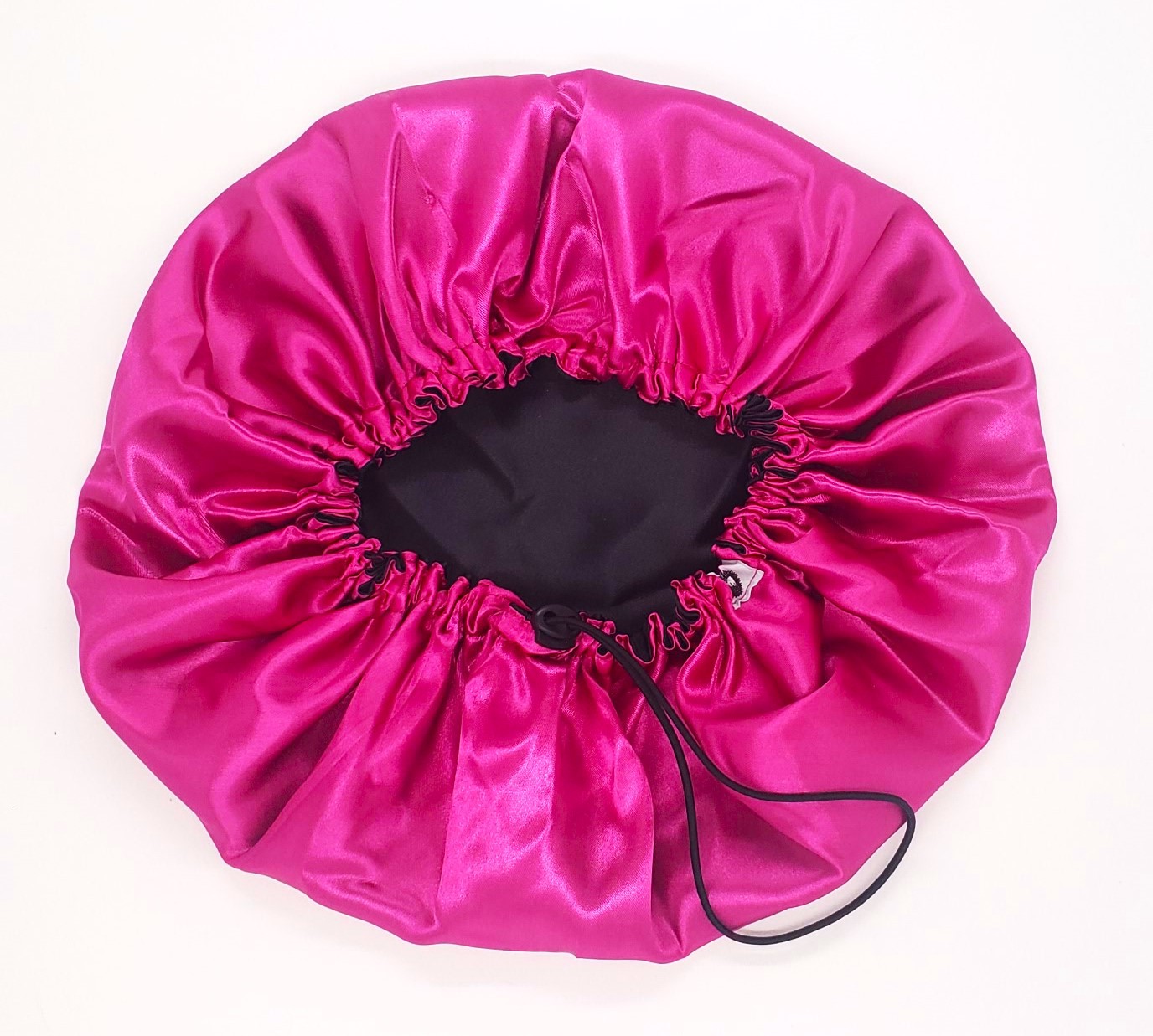 Touca de Cetim Dupla Face Ajustável Preta com Pink