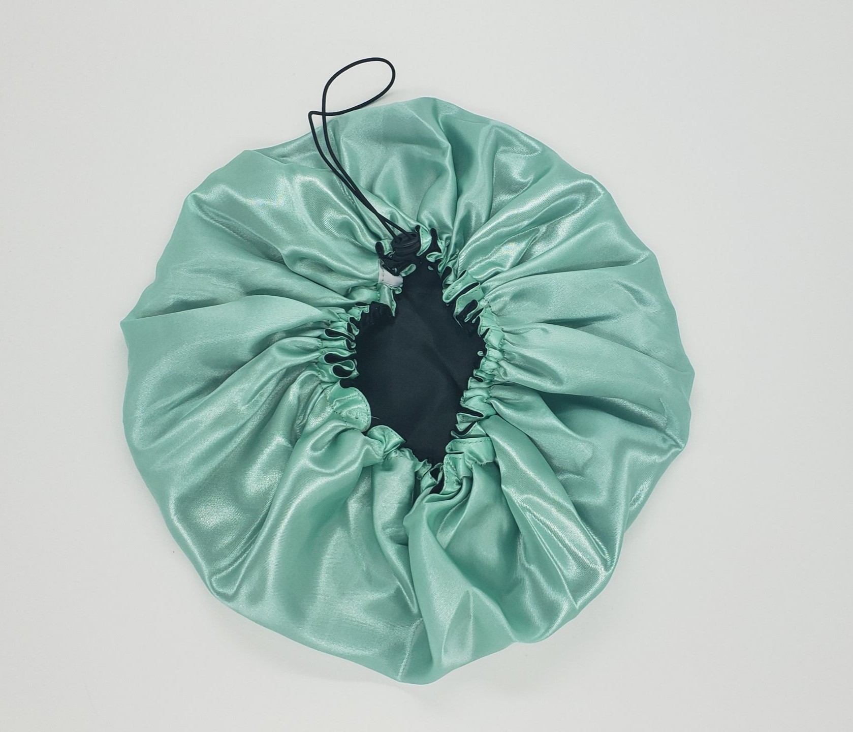 Touca de Cetim Dupla Face Ajustável Preta com Verde Água